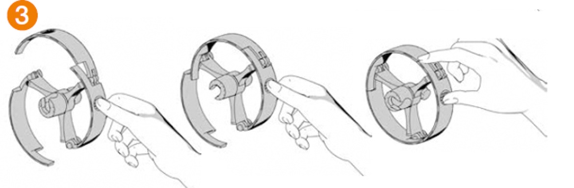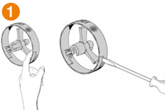 First lug - thread onto the notch by hand or using a screw driver