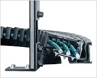 The modular structure of the guide trough enables the linking of a variety of radii of chains, circles and bends with always the same trough parts.