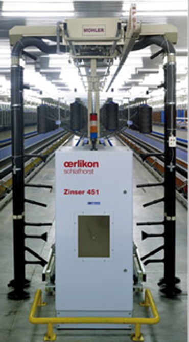Travelling cleaners are installed in these textile machines to suction off fluff and waste during spinning or weaving. The cleaners move from one end of the machine to the other at a speed of up to 16 metres per second over a distance of 70 metres. Before an e-chain® was used, the power cable regularly became tangled, leading to short-circuits and cleaner downtime. The e-chain® has put an end to the problem.