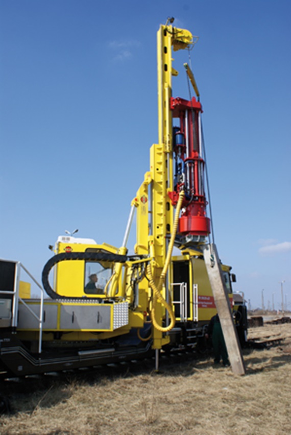 These drilling and piling machines are used in railway construction, for example, to set concrete piles for electric cables. Numerous hydraulic hoses with different diameters and weights are used in the device, making it difficult to find a suitable guiding system. Ultimately, igus® e-chains® were found to manage best under the different loads and guarantee safe guiding of the hoses.